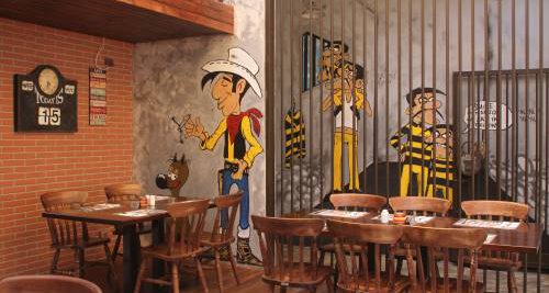 Η ατμόσφαιρά του είναι μοναδική και σε μπάζει μονομιάς στην εποχή του Far West! Το πρόθυμο και ιδιαίτερα εξυπηρετικό προσωπικό του θα φροντίσει να περάσεις υπέροχα! Στα δεξιά σου, ένα σαλούν σερβίρει μαργαρίτες, παγωμένες Tex Mex μπίρες, κρασί και κοκτέιλ για παιδιά μαζί με τσιμπήματα!