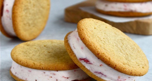 Μόλις είναι έτοιμο το παγωτό μας, φτιάχνουμε τα σάντουιτς και τα βάζουμε στην κατάψυξη.