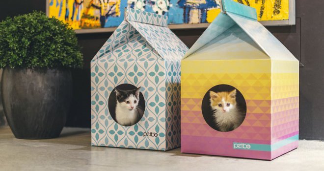 Τα γατόσπιτα που μοιάζουν με κουτιά από γάλα, είναι φτιαγμένα από 100% οικολογικά υλικά και τα αγοράζεις σετ με το ειδικό pad για να ξύνουν. Επίσης, είναι πτυσσόμενα και μετατρέπονται και σε τσαντούλες μεταφοράς του κατοικίδιού σου. Θα τα βρεις σε δύο σχέδια ενώ οι ιδιοκτήτες της εταιρίας ψάχνουν την επόμενη έξυπνη ιδέα τους.