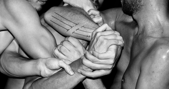 Στο Noon -το νέο έργο του Αλέξη Βασιλείου- τρεις άνδρες επιχειρούν να συντονιστούν με τον παλμό των σωμάτων τους επιτρέποντας στα ρυθμικά μοτίβα που προκύπτουν να επηρεάσουν τον τρόπο που θα συναντηθούν και θα βιώσουν το μεταξύ τους άγγιγμα.