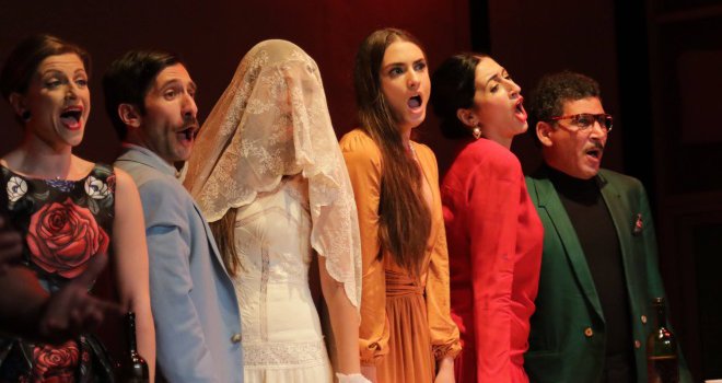 Με τεχνικές του αφηγηματικού θεάτρου και ζωντανή μουσική επί σκηνής εκτελεσμένη από τους ίδιους τους ηθοποιούς της παράστασης