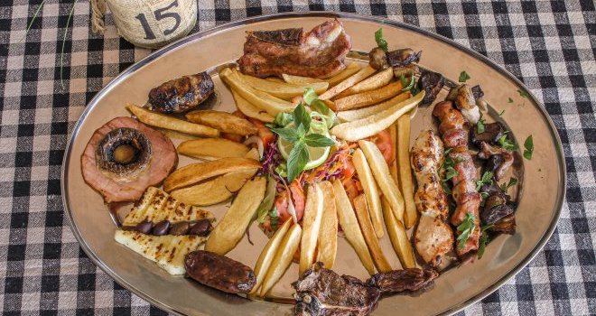 Καθίσαμε στην εξωτερική βεράντα του μαγαζιού όπου απολαύσαμε την κυριακάτικη ηρεμία της πολύβουης λεωφόρου Κυριάκου Μάτση στον Άγιο Δομέτιο. Το μενού περιλαμβάνει τα γνωστά μίας ταβερνούλας που σερβίρει κυπριακή κουζίνα όμως εδώ μας έκανε εντύπωση η πιατέλα των κρεατικών (€12). Μπορείς επίσης να επιλέξεις ανάμεσα σε μεζέδες σχάρας (€15) ή στους μεζέδες σχάρας μαζί με μαγειρευτά κατσαρόλας.