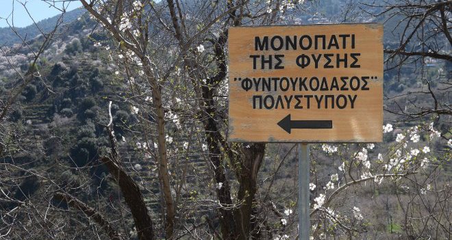 Όταν με το καλό φτάσεις στον Πολύστυπο και πάρεις οποιοδήποτε μονοπάτι που θα σε βγάλει σε κάποια πλαγιά, σε κάποιο διάσελο ή σε κάποια λαγκαδιά σίγουρα η φύση θα σε αποζημιώσει με το μεγαλόπρεπο θέαμα που θα αντικρίσεις. Η περιπλάνηση μέσα στο φυντουκόδασος ήταν πάντα ένας δημοφιλής προορισμός πολλών επισκεπτών. Το μονοπάτι αυτό είναι μήκους 1300 μέτρων και διέρχεται μέσα από αξιόλογα σημεία όπου η δραστηριότητα της φύσης και του ανθρώπου συνεργάζονται αρμονικά και με αλληλοσεβασμό. Σε κάποιο σημείο θα συναντήσετε το αυλάκι του νερού να κυλά μέσα από τα χόρτα με προορισμό να αρδεύσει τις φουντουκιές του Αη-Νικόλα του πολιούχου του χωριού. Η κάθε επίσκεψη στον βιότοπο του Πολυστύπου, και σε διαφορετικές χρονικές περιόδους έχει να προσφέρει ανεπανάληπτες εμπειρίες, γνώση, σεβασμό προς το περιβάλλον και τον θείο Δημιουργό και ξεκούραση και ανανέωση «οφθαλμών, σώματος, πνεύματος και ψυχής».