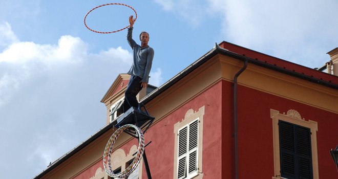 Ο ακροβάτης μας, ο Julot, είναι ένα ελαστικό και ευέλικτο θαύμα ο οποίος θα παίξει με κρίκους, ρυθμούς και το ίδιο του το σώμα, και όλα αυτά ισορροπώντας σε ένα πόλο ύψους εννέα μέτρων! Κατά την παράδοση του τσίρκου και τα κατορθώματά του, μεταξύ ουρανού και γης, ο Julot μας τρομάζει και μας κάνει να γελάμε, μας κάνει να ανακαλύψουμε ξανά την υπέροχη αίσθηση του ιλίγγου...