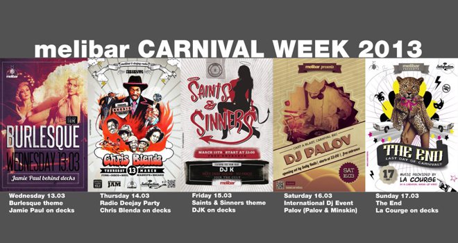 Πέντε θεματικές βραδιές διοργανώνει το Melibar όπου κάθε μέρα θα υπάρχει άλλος DJ, άλλο είδος μουσικής και φυσικά άλλο dress code!