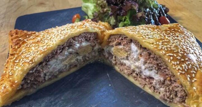 Εδώ μιλάμε για μεγάλες γευστικές αμαρτίες! Ευφάνταστα, πληθωρικά burger σε εκδοχές που θα σε εκπλήξουν Εκείνο όμως που θα σε κάνει να γουρλώσεις τα μάτια είναι ένα πιάτο από τις νέες αφίξεις του μαγαζιού! Πρόκειται για το The Funky Duke που δεν είναι απλά ένα burger ούτε καν ένα burger που θα σε ενθουσιάσει. Είναι το burger υπερπαραγωγή που θα σε εκπλήξει καταρχήν με το μέγεθος και έπειτα τον τρόπο που είναι φτιαγμένο. Πρόκειται για ένα burger wellington δηλαδή που είναι φτιαγμένο από 300 γραμμάρια μοσχαρίσιο κιμά angus, γεμιστό με φρέσκο φουαγκρά, σος τυριού chevre και μανιτάρια porcini ψημένο μέσα σε σφολιάτα. Το σκέφτεσαι;