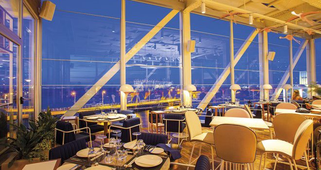 Η αρχιτεκτονική και η διακόσμηση του χώρου αποπνέουν τον αέρα ενός superyacht που έχει αράξει στην προβλήτα της Λεμεσού.