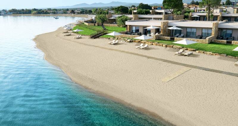 Το Ikos Olivia έχει λειτουργήσει τέσσερις ολοκαίνουργιες παραθαλάσσιες σουίτες – μπανγκαλόου δύο δωματίων, που αποτελούν την επιτομή της σύγχρονης κομψότητας, καθώς βρίσκονται σε προνομιούχα παραθαλάσσια τοποθεσία είτε στο ισόγειο επίπεδο με ιδιωτικό κήπο είτε στον πρώτο όροφο με μπαλκόνι. Λίγα βήματα μόνο από την παραλία, οι σουίτες προσφέρουν υπέροχη θέα στο Αιγαίο Πέλαγος, αναδεικνύοντας τη μοναδική τοποθεσία του resort στην όμορφη ακτογραμμή της Χαλκιδικής. Οι ολοκαίνουριες, εξαιρετικά ευρύχωρες σουίτες είναι ιδανικές για μεγάλες οικογένειες, καθώς προσφέρουν δύο υπερσύγχρονα και κομψά δωμάτια και ξεχωριστό σαλόνι με μοντέρνα και πολυτελή διακόσμηση για επιπλέον ιδιωτικότητα. Τους χώρους αυτούς συμπληρώνουν ιδανικά ένα μπάνιο και ένας ανεξάρτητος χώρος ντους, εφοδιασμένο εξ’ ολοκλήρου με καλλυντικά και προϊόντα μπάνιου της Anne Semonin. Οι παραθαλάσσιες αυτές σουίτες διαθέτουν επιπλωμένο μπαλκόνι ή ιδιωτικό κήπο με ξαπλώστρες ακριβώς μπροστά από την παραλία του ξενοδοχείου.