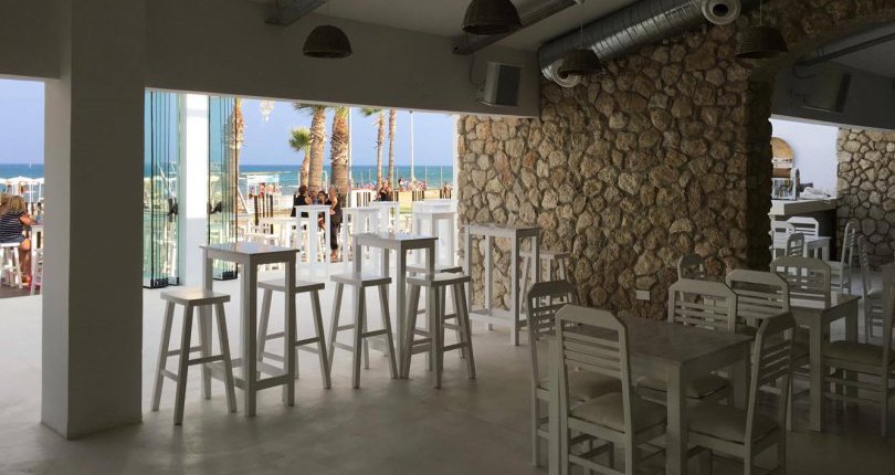 Ένας χώρος όπου κυριαρχεί το λευκό χρώμα, με ξύλινα high stools και τραπέζια στην εξωτερική ξύλινη βεράντα ενώ στο εσωτερικό υπάρχει επένδυση από πέτρα. Ένα κατάλευκο μπαρ σε συντροφεύει και σου σερβίρει αλκοολούχα ποτά ενώ εσύ θα ρεμβάζεις τη θάλασσα και θα κάνεις ανέμελες βουτιές.