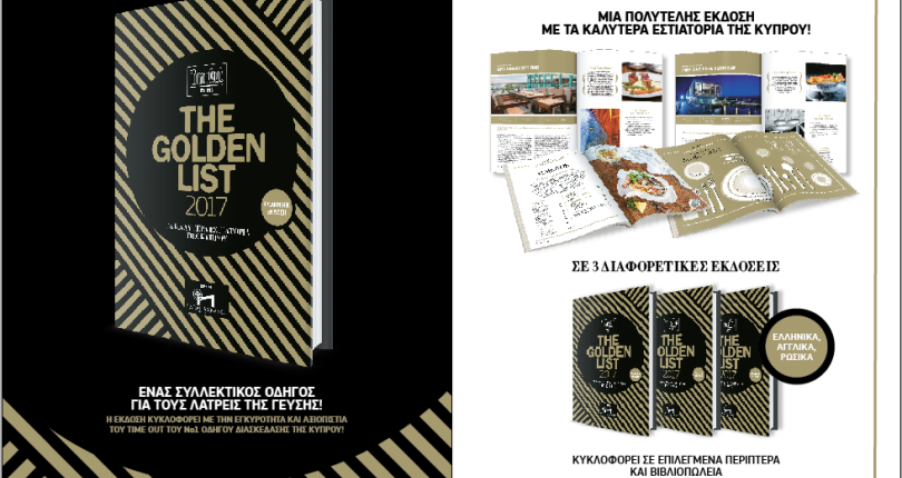 Το Check In Cyprus, ο απόλυτος οδηγός διασκέδασης της Κύπρου, κυκλοφορεί και φέτος την πολυτελή ετήσια έκδοση "The Golden List 2017" με τα καλύτερα εστιατόρια της Κύπρου.