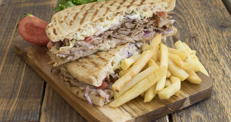 Η σκεπαστή λοιπόν φτιάχνεται με δύο ή περισσότερες διαστρωματώσεις με τη μέθοδο του club sandwich με γύρο και τα υλικά που προτιμά ο πελάτης. Εδώ θα την βρεις με γύρο κοτόπουλο και χοιρινό με κόστος 6 ευρώ. Το μαγαζί αν και μικρό διαθέτει μερικά τραπεζάκια για φαγητό επί τόπου αλλά προσφέρει take away και delivery.