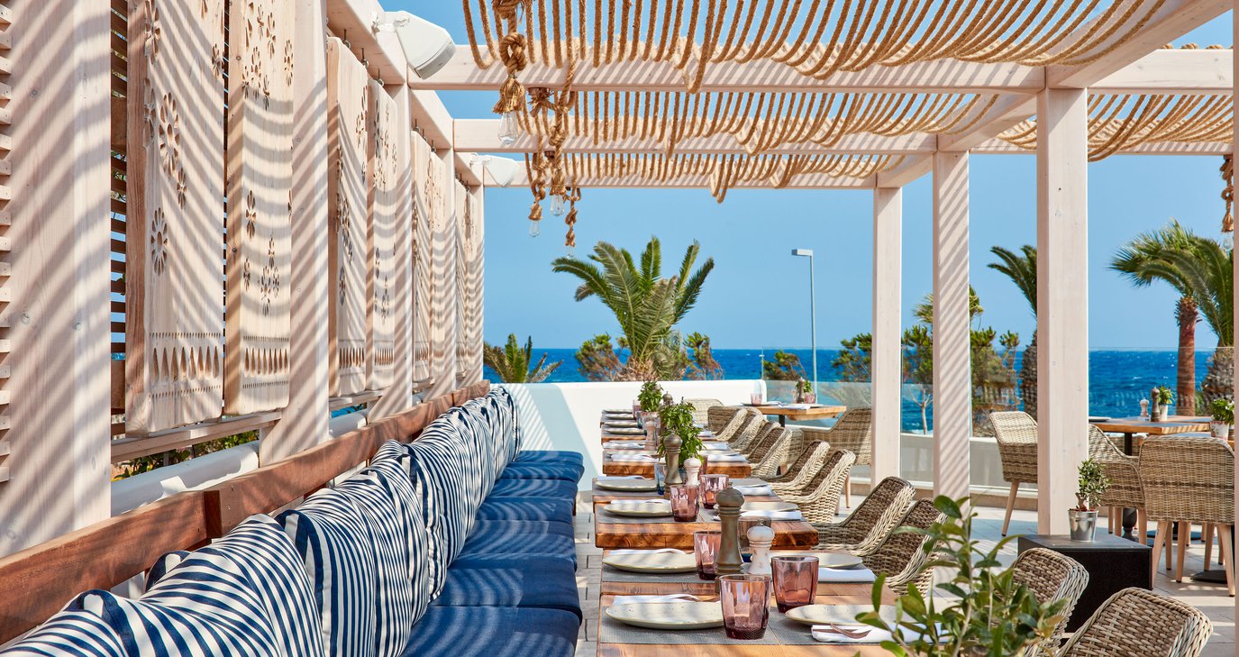 Με απόλυτη θέα προς το μεσογειακό μπλε και τη θέρμη που προσδίδουν το ξύλο και το φυσικό φως της ημέρας, το εστιατόριο 'Mandolin Med Bistro', συνδυάζει περίτεχνα γεύσεις από την ελληνική κουζίνα. Η wine list δίνει ιδιαίτερη έμφαση στον Κυπριακό και Ελληνικό αμπελώνα, ενώ λίγο πιο πέρα βρίσκεται το Ασιατικό εστιατόριο όπου σερβίρει μοναδικές γεύσεις από την Άπω Ανατολή. Δροσερά πιάτα και αμέτρητες επιλογές sushi, είναι στη διάθεσή σας. Μπορείτε να επιλέξετε πιάτα από τον κατάλογο ή και tailor made επιλογές μαγειρεμένες μόνο για εσάς.