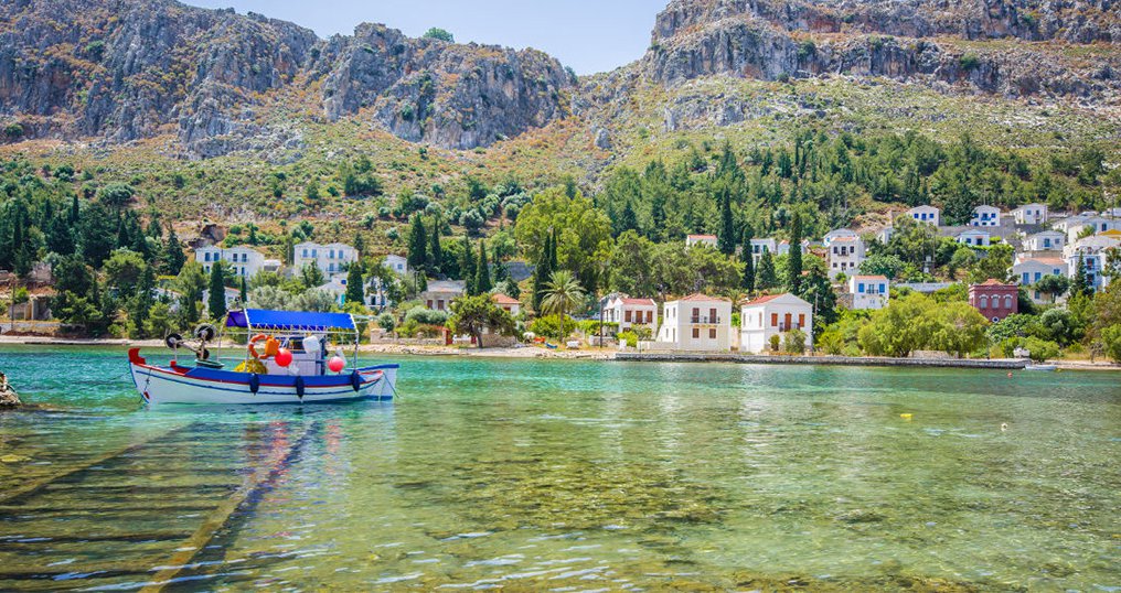 Η πρώτη επαφή με το νησί μοιάζει με ένα ταξίδι στα χρώματα. Τα αναστηλωμένα, κομψά αρχοντικά, σπάνιο δείγμα της αυθεντικής δωδεκανησιακής αρχιτεκτονικής, που του χαρίζουν γραφικό ύφος «σκαρφαλώνουν» στους βράχους. Είναι ένας μοναδικός οικισμός γύρω από το φυσικό λιμάνι, που περιλαμβάνει τις συνοικίες Πηγάδια, Χωράφια και Μανδράκι, οι οποίες μαγεύουν το φωτογραφικό φακό με την ομοιομορφία της κατασκευής τους.