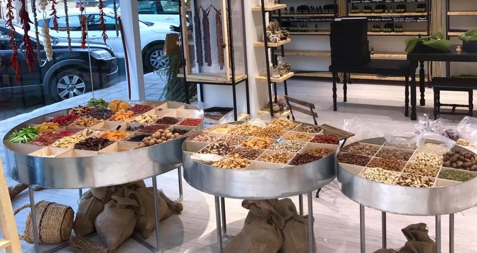 Στο κατάστημα διατίθενται σπιτικά γλυκά του κουταλιού, μαρμελάδες, αγνό μέλι, μανταρινάδες, λεμονάδες, σιουσιούκος, παστελάκι, παστέλι, λουκούμια, χαρουπόμελο, έψιμα, λάδια, ελιές και πάρα πολλές άλλες λιχουδιές που φτιάχνονται στον τόπο μας. Επίσης, μεγάλη ποικιλία σε βότανα, μπαχαρικά, τσάγια, οργανικά θεραπευτικά βότανα, βιολογικά καλλυντικά, αιθέρια έλαια και άλλα.