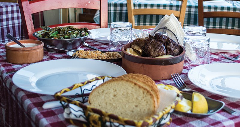Όταν από την άλλη ξυπνά στις 05.00 το πρωί για να ετοιμάσει το φούρνο στην ταβέρνα Άγιος Αμβρόσιος (24323124) στην Κοφίνου το οφτό του ταψιού ψημένο σε ξυλόφουρνο γίνεται λουκούμι.