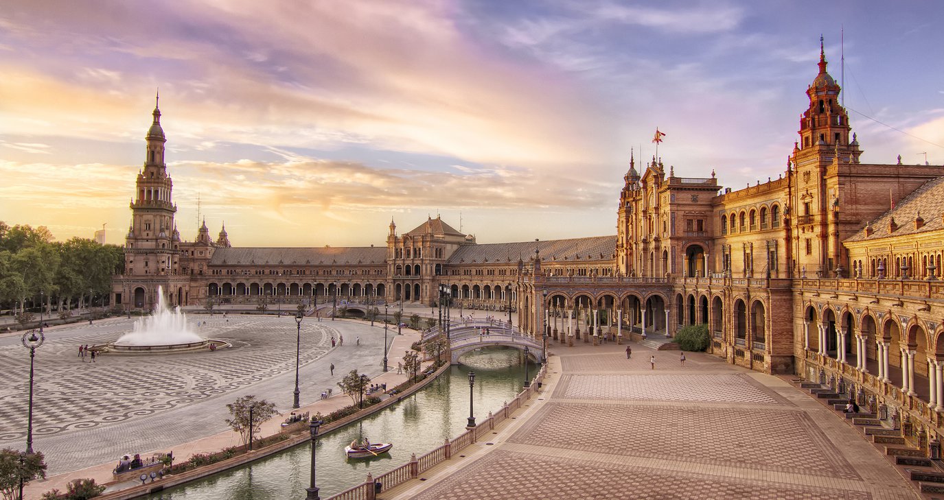 Η εντυπωσιακή πλατεία στην πρωτεύουσα της Ανδαλουσίας βρίσκεται στο πάρκο της Maria Luisa και κατασκευάστηκε το 1929 λόγο της Ισπανο-Αμερικάνικης έκθεσης από το διάσημο αρχιτέκτονα Anibal Gonzalez. Σήμερα στεγάζει κυβερνητικά γραφεία ενώ στο κέντρο της υπάρχει ένα εντυπωσιακό συντριβάνι και περιμετρικά θα βρείτε, περίτεχνα διακοσμημένες γέφυρες και τοιχογραφίες με την ιστορία κάθε επαρχίας της Ισπανίας. Το τεράστιο κτίριο περιμετρικά της πλατείας είναι ίσως το πιο εύκολα αναγνωρίσιμο στη Σεβίλλη και θεωρείται η επιτομή της Μαυριτανικής αναγέννησης.