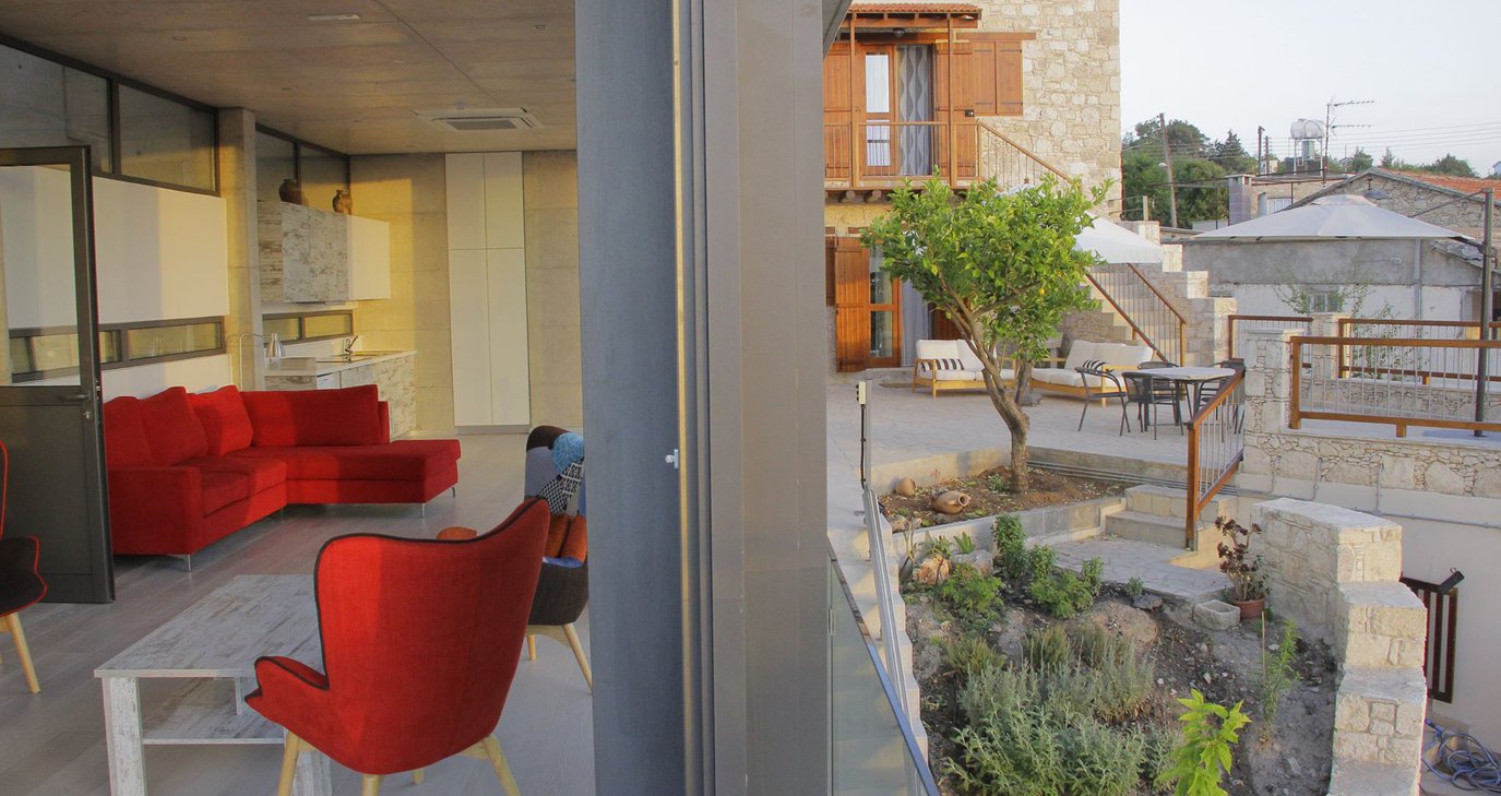 Η αναπαλαίωση του χώρου έγινε με σεβασμό προς την παραδοσιακή αρχιτεκτονική, τη λευκή πέτρα -χαρακτηριστικό της αρχiτεκτονικής του χωριού-, αλλά και με την τόλμη της χρήσης νέων υλικών και τεχνικών. Ο συνδυασμός της μοντέρνας αρχιτεκτονικής με χυτό μπετόν με την παραδοσιακή 'έδεσε' με αρμονία και έδωσε ένα εντυπωσιακό αποτέλεσμα.