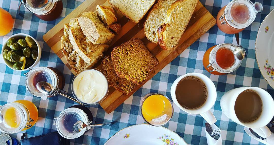 Η Κίκα καθημερινά φτιάχνει τέσσερα διαφορετικά είδη ψωμιού τα οποία έφτασαν φρεσκότατα και μυρωδάτα στο τραπέζι μας. Κυπριακό χωριάτικο ψωμί, τσουρέκι, honey bread και το κολοκυθόψωμο που πραγματικά κλέβει τις εντυπώσεις. Όλα αυτά παντρεύονται με ελιές τσακιστές, φρέσκο χαλούμι και αναρή ντόπιων παραγωγών, χαρουπόμελο, μέλι και φρεσκοστυμμένος χυμός μανταρίνι. Επίσης, εκείνη την μέρα η Μάρλεν μας ενημέρωσε πως είχε χωριάτικο λουκάνικο κρασάτο το οποίο τιμήσαμε δεόντως.