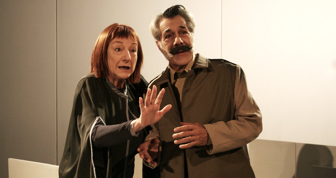 Όσον αφορά τους ρόλους των δύο γέρων, παρόλο που ο ίδιος ο Ιονέσκο εισηγείται να τους αναλαμβάνουν νέοι ηθοποιοί για να αντεπεξέρχονται στο επίπονο κουβάλημα των καρεκλών (κυρίως η γριά), στη δική μας παράσταση, που γίνεται στο καταστάλαγμα και τον ηχηρό απόηχο του έργου και γενικά όλων των έργων του Θεάτρου του Παραλόγου, αναλαμβάνουν δύο έμπειροι και ώριμοι ηθοποιοί, ο Σταύρος Λούρας και η Αννίτα Σαντοριναίου, κυρίως για να μπορέσουν να επωμιστούν το «βάρος» της ηλικίας ως πιο σημαντική παράμετρο σήμερα και να μη χρειαστεί να καταφύγουμε στην «εφετζίδικη» καρικατούρα στην οποία θα καταφεύγαμε, αναγκαστικά, αν τους ρόλους τους παίζανε δύο νεαροί ηθοποιοί.