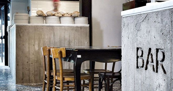 Με μια μεγάλη ελιά, ακριβώς στο κέντρο του, σύμβολο σοφίας και μακροζωίας, ο χώρος καταφέρνει να ισορροπεί μοντέρνα και κλασικά κομμάτια με τέτοια μαεστρία, που δεν χορταίνεις να τον περιεργάζεσαι. Η μοντέρνα αυτή πιτσαρία δεν είναι απλά ένα εστιατόριο, αλλά και lounge και καφετερία και μπαρ συνάμα. Σερβίρει έξοχες πίτσες και ξεχωριστά πιάτα από το βιβλίο μαγειρικής της γιαγιάς. Και το πιο εκπληκτικό από όλα είναι ότι συμμερίζεται με πάθος αυτούς που αγαπούν το καλό φαγητό, αφού στον τοίχο του αναγράφεται και το εξής: Όποιος δεν απολαμβάνει το φαγητό είναι τρελός, μανιώδης και του λείπει το αίσθημα της κοινής λογικής’.
