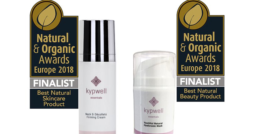 Η Kypwell είναι ιδιαίτερα περήφανη που δύο από τα προϊόντα της έφτασαν φιναλίστ σε δύο κατηγορίες στα βραβεία του Natural & Organic Awards Europe 2018! Η Youthful Natural Hyaluronic Mask ήταν φιναλίστ για "Best New Natural Beauty Product" και η Neck & Décolleté Firming Cream ήταν φιναλίστ για "Best New Natural Skincare Product".