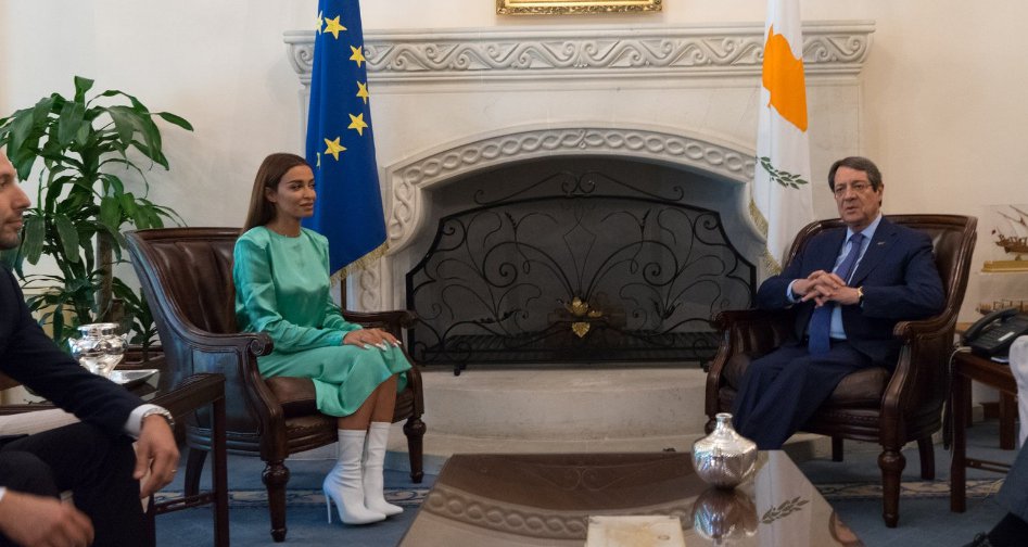 "Είναι μεγάλη μου τιμή που εκπροσώπησα την Κύπρο. Είμαι πολύ υπερήφανη και είναι τιμή μου που βρίσκομαι σήμερα εδώ", είπε η τραγουδίστρια στον Νίκο Αναστασιάδη.