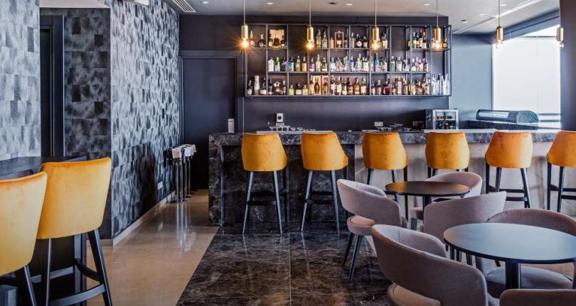 H εδώ και αρκετούς μήνες πολυαναμενόμενη, ξενοδοχειακή άφιξη, πήρε επιτέλους σάρκα και οστά, φέρνοντας μαζί της και το Sky bar. H τηλεφωνική κράτηση, αρκετές μέρες πριν, επιβάλλεται, τόσο για να πάρεις από την ρεσεψιόν την ‘’πράσινη κάρτα’’ απογείωσης στον 16ο όροφο, μα περισσότερο για να πετύχεις ένα από τα περιζήτητα τραπέζια ή τα haute couture, ενδεδυμένα, καναπεδάκια, της εμβληματικότερης βεράντας της πόλης του Ζήνωνα.