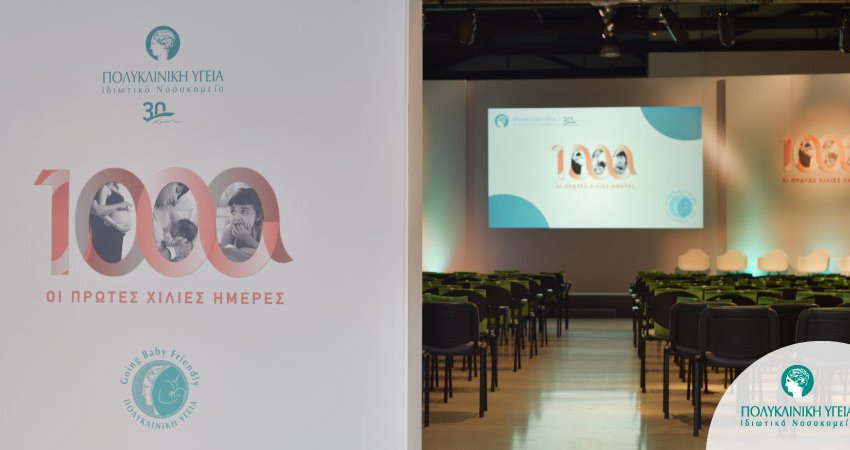 Στα πλαίσια της Εταιρικής Κοινωνικής Ευθύνης και της Πρωτοβουλίας «Φιλικό προς το Βρέφος Νοσοκομείο», η Πολυκλινική ΥΓΕΙΑ διοργανώνει για 2η συνεχόμενη χρονιά Ημερίδα με θέμα: «Οι Πρώτες 1000 Ημέρες».