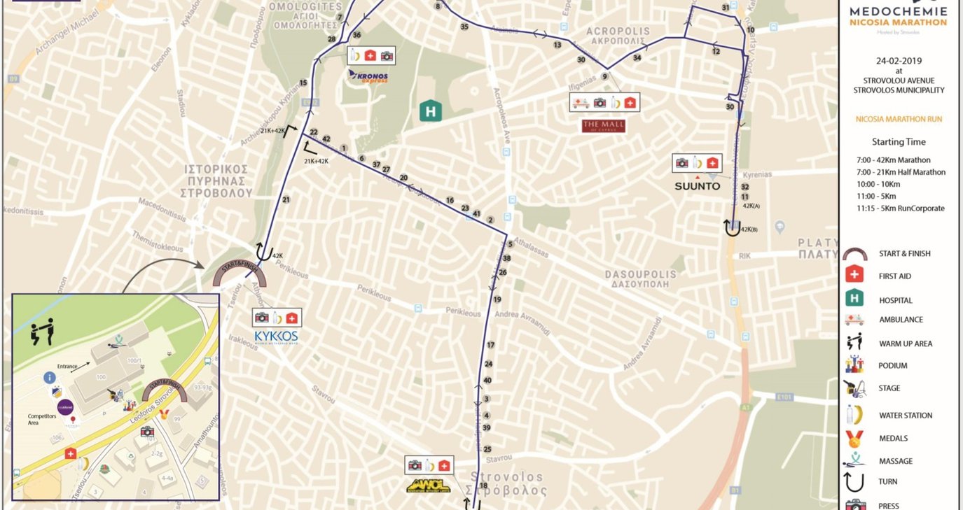Οι διοργανωτές του Μαραθωνίου Λευκωσίας απολογούνται για την αναπόφευκτη ταλαιπωρία που θα προκληθεί και καλούν το κοινό όπως επιδείξει την απαραίτητη κατανόηση και συμμορφώνεται με την προσωρινή οδική σήμανση και τις υποδείξεις της Αστυνομίας.
