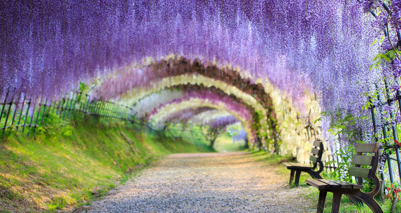 κόμα και ο ζωγράφος με την πιο οργιώδη φαντασία θα δυσκολευόταν να οραματιστεί ένα τοπίο τόσο μαγευτικό όσο οι Κήποι Γλυσίνας Kawachi Fujien στην Ιαπωνία. Η αρχιτεκτονική συμμαχεί με τη φυσική ομορφιά των αναρριχητικών φυτών που ανθίζουν κάθε Απρίλιο δημιουργώντας στο πάρκο δύο τούνελ από λουλούδια, μήκους περίπου 100 μέτρων το καθένα. Όσοι τα έχουν διασχίσει μιλούν για μια γαλήνια, σχεδόν υπερβατική εμπειρία, που εξηγεί το γιατί τα άνθη γλυσίνας έχουν αναδειχθεί σε σύμβολο του βουδισμού.