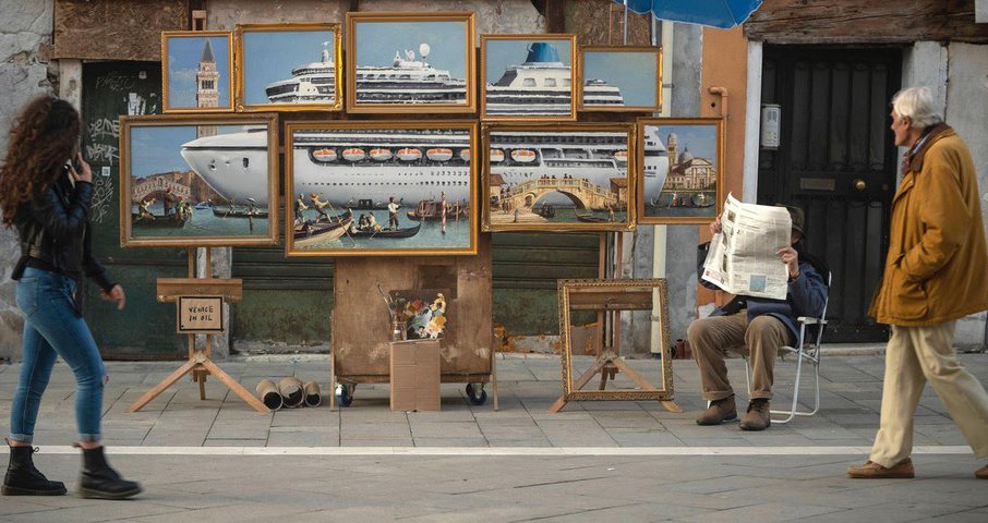 Ο Βanksy ως πωλητής δρόμου προσπαθεί να πουλήσει ελαιογραφίες που δείχνουν ένα τεράστιο κρουαζιερόπλοιο στη Βενετία,θίγοντας έτσι το θέμα του τουρισμού στην πόλη και της ρύπανσης στην πόλη καθώς τα πλοία διασχίζουν το Μεγάλο Κανάλι. Το σύντομο κλιπ δείχνει μια σειρά από περαστικούς (και μια αδέσποτη γάτα), που θαυμάζουν τα έργα. Αργότερα όμως ο πωλητής Banksy γίνεται αντιληπτός από αστυνομικούς που του ζητάνε να εκκενώσει το δημόσιο χώρο επειδή δεν έχει άδεια.