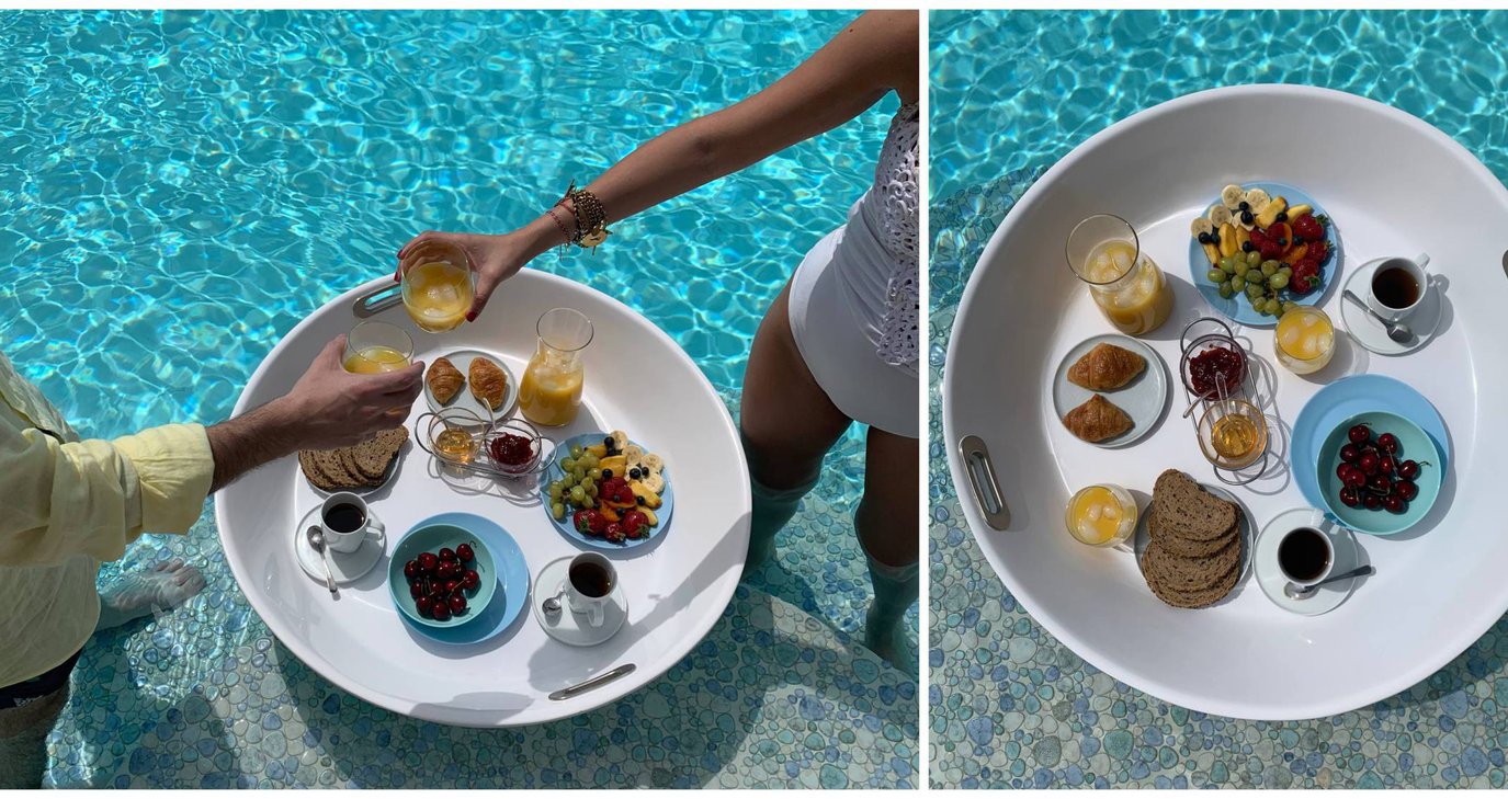 Οι καλεσμένοι μπορούν να απολαύσουν το πρωινό τους μέσα στην πισίνα με την μοναδική εμπειρία ενός μεγάλου πλωτού δίσκου που μπορεί το ξενοδοχείο να χρησιμοποιήσει ως αποκλειστική υπηρεσία για τους πελάτες, για την ιδιωτική πισίνα τους για πρωινό ή brunch. Δεν υπάρχει καλύτερος ή πιο πολυτελής τρόπος για τους επισκέπτες να ξεκινήσουν τη μέρα!