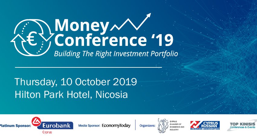 Για 2η συνεχόμενη χρονιά, την Πέμπτη 10 Οκτωβρίου 2019, στο ξενοδοχείο Hilton Park πραγματοποιείτε το Money Conference 2019: ‘Κτίζοντας το σωστό επενδυτικό χαρτοφυλάκιο’. Το Συνέδριο διοργανώνεται από το Κυπριακό Εμπορικό Βιομηχανικό Επιμελητήριο, τον Κύπρο - Ρωσικό Επιχειρηματικό Σύνδεσμο και το Top Kinisis.
