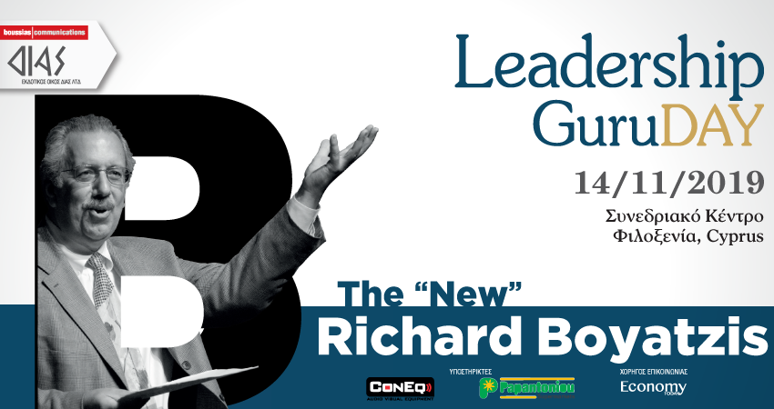 Η DIAS Media Group και η Boussias Communications διοργανώνουν, την Πέμπτη 14 Νοεμβρίου 2019, το μεγαλύτερο συνέδριο για τα Ηγετικά Στελέχη επιχειρήσεων και τους επαγγελματίες από τον χώρο της Διοίκησης Ανθρώπινου Δυναμικού. Φέτος οι συμμετέχοντες στο LeadershipGuruDAY θα έχουν την μοναδική ευκαιρία να συναντήσουν και να συνομιλήσουν από κοντά με τον κορυφαίο στον τομέα της συναισθηματικής νοημοσύνης (EQ) του behavior change and competence, Professor Richard Boyatzis.