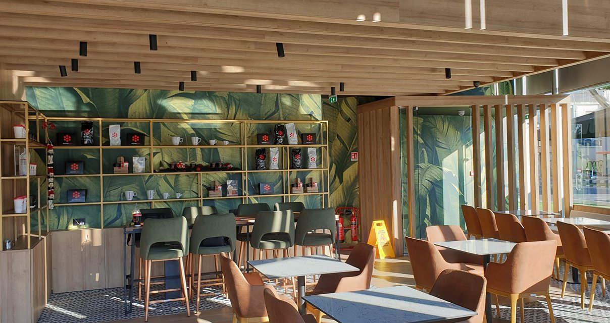 To νεό μαγαζί της αλυσίδας που φημίζεται για την υψηλή ποιότητα του καφέ της, είναι γωνιακό, με ιδιαίτερο στυλ και φινέτσα, μία άνετη βεράντα από όπου μπορείς να παρακολουθείς την κίνηση του πολυσύχναστου δρόμου και με υπόγειο χώρο στάθμευσης.