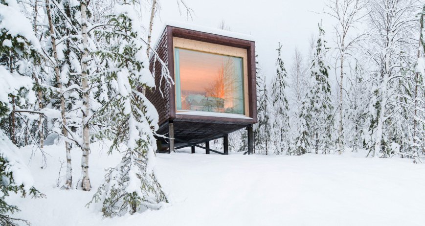 Το Arctic Treehouse Hotel, που έχει κατασκευαστεί από το στούντιο αρχιτεκτονικής Puisto με έδρα του το Ελσίνκι, ακολουθεί μια νέα τάση στον τομέα της αρχιτεκτονικής, αυτή των «cone cows», δηλαδή ξύλινων κατασκευών που εξωτερικά μοιάζουν με την υφή του βελανιδιού. Το στούντιο Puisto έχει αναλάβει συνολικά την κατασκευή 32 τέτοιων «δεντρόσπιτων», τα οποία βρίσκονται σε δυάδες και διαθέτουν πολύ καλή μόνωση. Στόχος του ήταν να υπάρξει όσο το δυνατόν μικρότερη επίπτωση στο περιβάλλον και γι'αυτό τον λόγο η αισθητική τους ταιριάζει αρκετά με την αντίστοιχη του τοπίου τριγύρω. «Το οικολογικό αποτύπωμα, τόσο όσον αφορά τα υλικά όσο και τις τεχνικές λύσεις που τελικά δόθηκαν για την κατασκευή τους, υπήρξε ένας σημαντικός παράγοντας σε κάθε βήμα της παραγωγικής διαδικασίας» αναφέρουν οι αρχιτέκτονες.