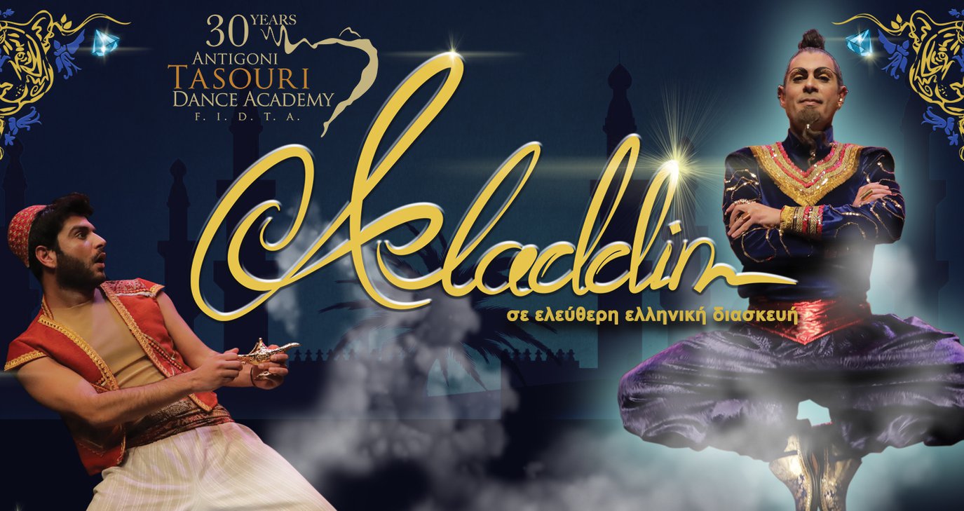 Η Ακαδημία Χορού Αντιγόνη Τασουρή, φέτος γιορτάζει 30 χρόνια από την ίδρυσή της και σε συνεργασία με τον Πολιτιστικό Όμιλο «ΜΟΡΦΗ», παρουσιάζει στις 6, 7 και 8 Μαρτίου 2020 στο Δημοτικό Θέατρο Στροβόλου το μιούζικαλ «Aladdin» για 5 μόνο παραστάσεις.