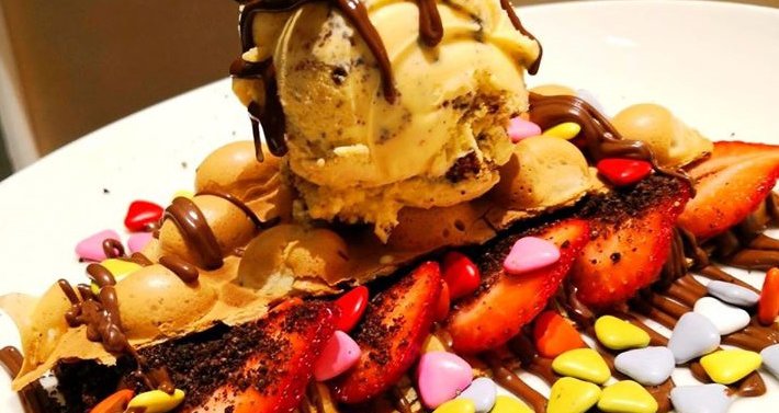 Ο λόγος για τη κρεπερί Hari’s Crepes η οποία, σου φτιάχνει bubble βάφλα με μπισκότο oreo, smarties, πουρακί γεμιστό σοκολάτας και σιρόπι σοκολάτας.