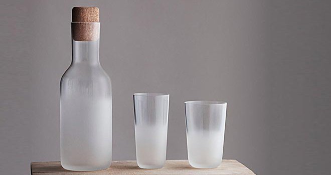 Η σειρά λέγεται Frost, σχεδιάστηκε από το σουηδικό studio Front και έγινε για λογαριασμό της δανέζικης φίρμας Stelton. H σειρά αποτελείται από ποτήρια, καράφα και παγοθήκη που έχουν ως κοινό χαρακτηριστικό την θαμπή όψη που συναντάμε και σε ένα παγωμένο παράθυρο που θόλωσε μέσα στη βαρυχειμωνιά! Μάλιστα, διάφοροι φελλοί επεμβαίνουν έξυπνα και συμπληρώνουν καλαίσθητα το φοβερό σχεδιασμό τους.
