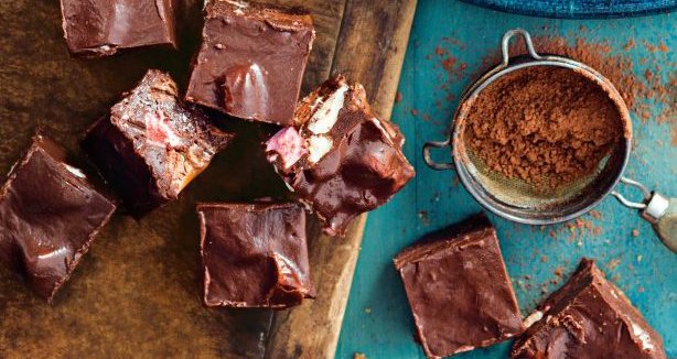 Βγάλτε από το ψυγείο το γλυκό, τραβήξτε μακριά το χαρτί και κόψτε το σε τετράγωνα κομματάκι ή μακρόστενες μπάρες.