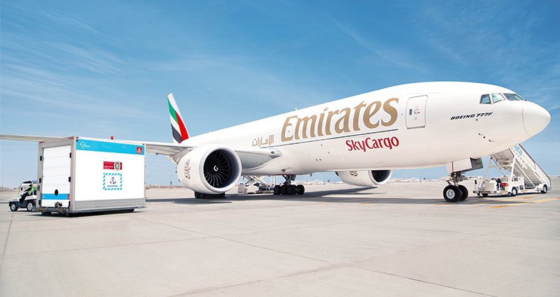 Η Emirates SkyCargo πραγματοποίησε πάνω από 2.500 ειδικές πτήσεις φορτίου τον Απρίλιο. Λειτουργώντας ως παγκόσμιος μεταφορέας για τη μεταφορά βασικών προμηθειών, συμπεριλαμβανομένων προστατευτικού εξοπλισμού, ιατρικών συσκευών, φαρμακευτικών προϊόντων και τροφίμων, ο αερομεταφορέας πραγματοποίησε περισσότερες από 1650 πτήσεις με τα επιβατικά Boeing 777-300ER και πάνω από 850 πτήσεις με τα φορτηγά Boeing 777 σε πάνω από 80 προορισμούς σε προγραμματισμένες και ειδικές ναυλωμένες πτήσεις. Από τον Ιανουάριο του 2020, ο αερομεταφορέας έχει μεταφέρει περισσότερους από 375.000 τόνους φορτίου.