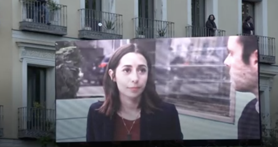 Το αυτοσχέδιο σινεμά δεν είναι παρά μια γιγαντοοθόνη, η οποία στήνεται κάθε απόγευμα σε άλλη γειτονιά, δίνοντας μια αφορμή στον κόσμο να παρατείνει την παραμονή του στο μπαλκόνι.