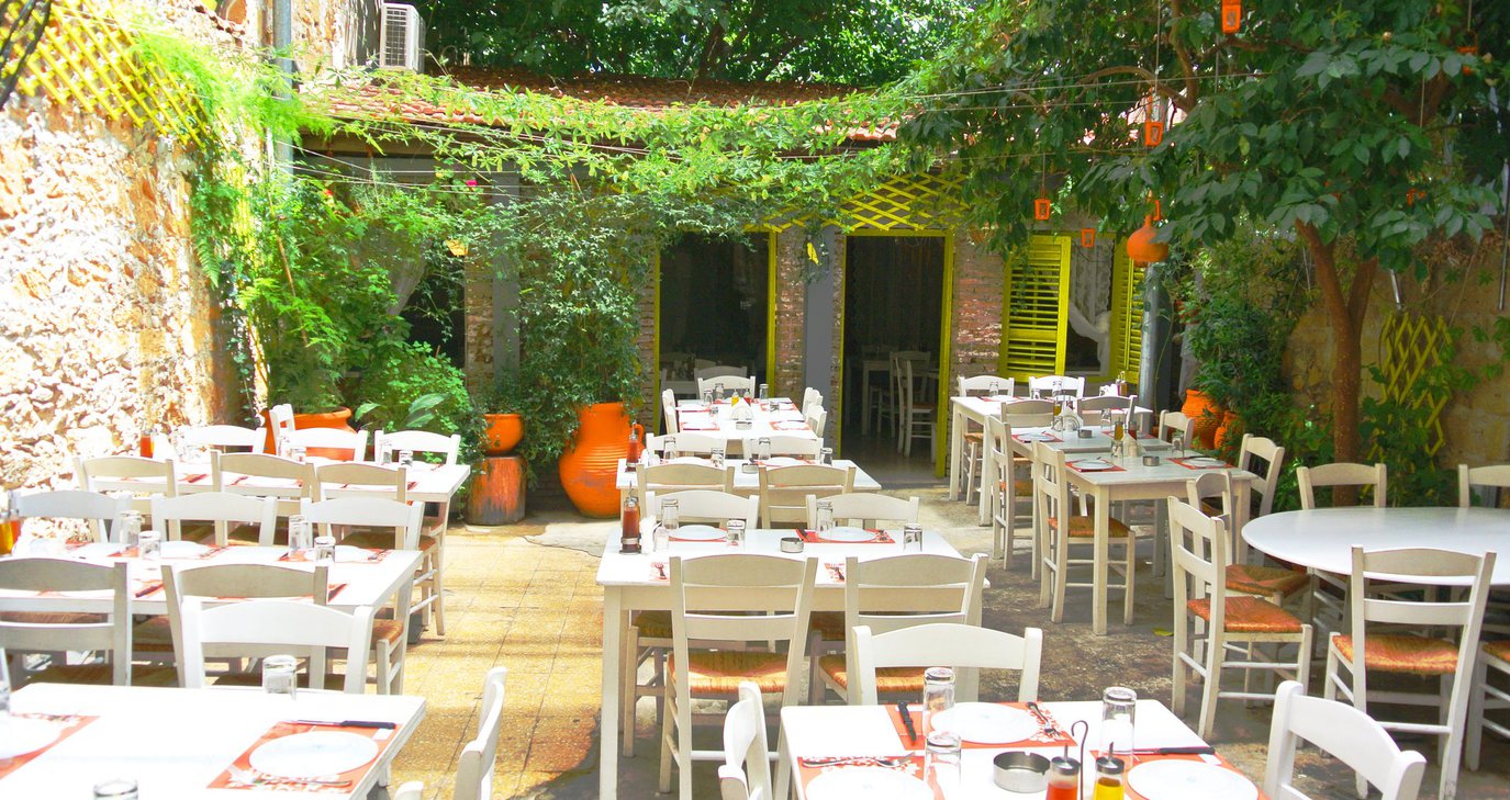 Επέστρεψε λοιπόν κι έστρωσε ξανά τα τραπεζάκια του στην εσωτερική παραδοσιακή αυλή του.