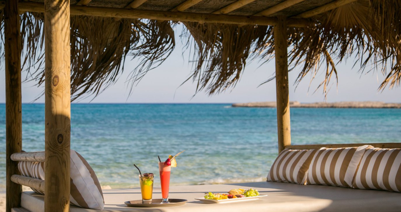 Πρόκετια για ένα εξωτικό beach bar με αναπαυτικά κρεβατάκια με λευκά μαξιλάρια επάνω σε ξύλο και φύλλα φοινικιάς, χαλαρή μουσική και δροσερά κοκτέιλ.