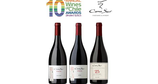 Τεράστια επιτυχία γνώρισαν τα κρασιά Cono Sur στα 10α ετήσια Βραβεία Κρασιού που πραγματοποιήθηκαν πρόσφατα στη Χιλή. Oι κριτές, αφού δοκίμασαν πέραν των 600 κρασιών επέλεξαν τα ακόλουθα κρασιά Cono Sur ως τα καλύτερα της Χιλής: