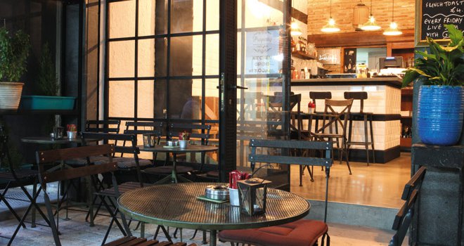 Όμορφα βαλμένο σε μια ήσυχη πάροδο της Ονασαγόρου, στην οδό Αριστοτέλους (δίπλα στο British Council) βάζει το στίγμα του στην παλιά πόλη με το rusticbistrot style χαρακτήρα του. Τα μεταλλικά, κυκλικά τραπεζάκια στον ημικαλυμμένο αίθριο χώρο της πεζοδρομημένης οδού, τα γλαστράκια στα ράφια, μα και το “πάντρεμα” της country αισθητικής με τις industrial πινελιές, αποτελούν τις σταθερές της διακοσμητικής του ταυτότητας. Η κάρτα του απλή και απέριττη, σου τρυπά τα ρουθούνια με άφθονους κρύους και ζεστούς καφέδες, σε τιμές μάλιστα που δεν “καίνε” (διπλός espresso €2, freddo cappuccino €2.50), ενώ ιδιαίτερο ενδιαφέρον παρουσιάζει η κάρτα με τις επιλεγμένες μπίρες και τα επίσης value for money cocktails. Hugo, Spritz Veneziano, αλλά και τα αγαπημένα σου Cosmopolitan, Mojito και Caipirinha (€5-6) θα δροσίσουν τον ουρανίσκο σου πριν ή και μετά το κυριακάτικο brunch ή το ελαφρύ σου δείπνο. Από τη μικρή του κάρτα φαγητών πες αρχικά “ναι” στο στήθος κοτόπουλο με honey mustard sauce, στο σολομό που “βαφτίζεται” σε sauce bearnaise, αλλά και στις σκορδάτες γαρίδες που σβήνονται με κρασί. Από τις τρεις επιλογές σε σαλάτες, κάνε “κλικ” στη Caesar (€6.90) με συντελεστές το μαρούλι, το ζεστό στήθος κοτόπουλο, το μπέικον και τις νιφάδες παρμεζάνας. Καλή επιλογή είναι και η κλασική penne carbonara (€7.50) -θα ‘θελα παρεμπιπτόντως το κρεμμυδάκι της πιο ψημένο-, αλλά και το σπιτικό τους, από βοδινό και χοιρινό κιμά, burger (€8.50), που έρχεται παρέα με σαλάτα και French fries. Τέλος, πάρε τα φώτα της ευγενέστατης σερβιτόρας που χαμογελά από καρδιάς, όσον αφορά στα γλυκά ημέρας, που ως συνήθως είναι το εκμέκ κανταΐφι με παγωτό κανέλα, η μηλόπιτα ή το κέικ καρότου.