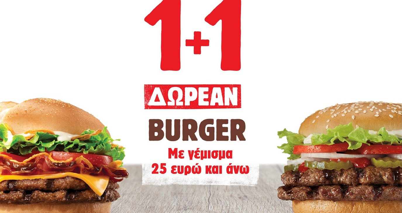 Γεμίζοντας το αυτοκίνητο με καύσιμα αξίας 25 ευρώ και άνω στην Esso, θα προσφέρεται κουπόνι για 1+1 δωρεάν burger από τα Burger King! Η προσφορά ισχύει για όλα τα burgers της γνωστής αλυσίδας εστιατορίων και το κουπόνι μπορεί να εξαργυρωθεί σε dine in, take away ή τηλεφωνικά στο 77 77 72 72.