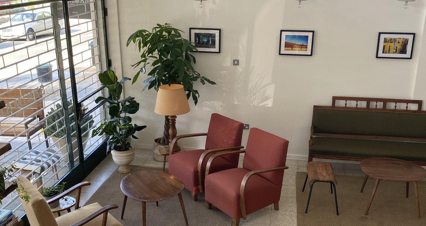 Είναι ένα μικρό ποιοτικό street coffee shop στο κεντρό της πόλης. "Διατηρήσαμε την παραδοσιακή εμφάνιση και τα υλικά του καταστήματος, δώσαμε όμως το προσωπικό μας το στιλ και την υπογραφή μας συλλέγοντας αντίκες και κλασικά έπιπλα τα οποία συνδυάσαμε και ταιριάξαμε με κομμάτια μοντέρνας τέχνης και άλλα αντικείμενα. Άλλωστε στόχος μας είναι να φιλοξενούμε και να εκθέτουμε αντικείμενα και έργα που προέρχονται από νέους καλλιτέχνες (από την και παγκοσμίως). Προς το παρόν έχουμε εικόνες του Μάρκου Παπαμιχαήλ - ενός νεαρού Κύπριου καλλιτέχνη που ταξιδεύει σε όλο τον κόσμο και διδάσκει αγγλικά σε ισπανόφωνους ανθρώπους για να ζήσει! Οι εικόνες του είναι μια επιλογή από τις εκατοντάδες όμορφες φωτογραφίες που τραβήχτηκαν σε διαφορετικές χώρες".