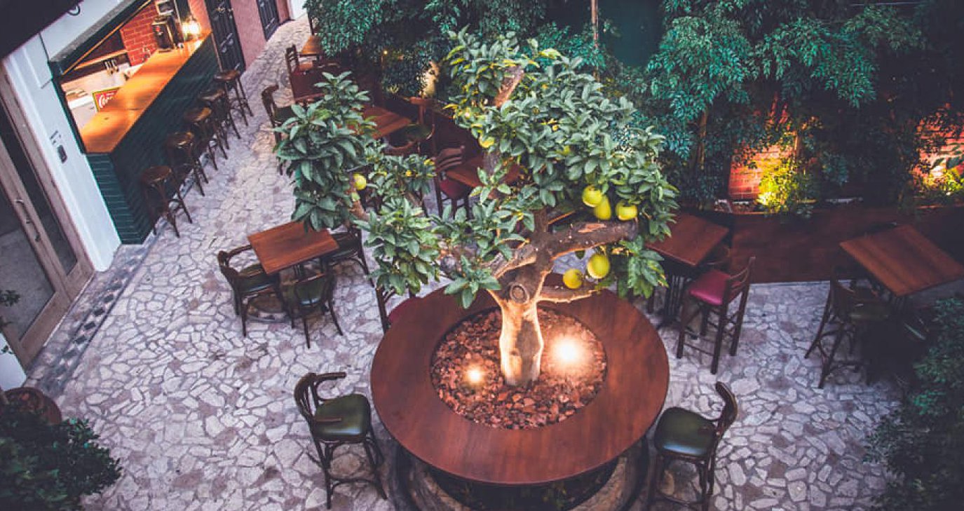Το all day bar restaurant, που βρίσκεται κρυμμένο μέσα σε μία μικρή στοά, στο κέντρο της πόλης, στην οδό Ανεξαρτησίας, λειτουργεί από τις πρωινές ώρες σερβίροντας σνακ, καφέ και ποτά, μπύρες, πρωινό, μεσημεριανό και δείπνο, αποδεικνύοντάς μας περίτρανα ότι οι αυλές δεν είναι μόνο για το καλοκαίρι.