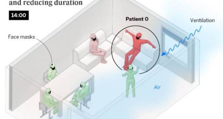 Ανεξάρτητα από το εάν τηρούνται ασφαλείς αποστάσεις, εάν τα έξι άτομα περάσουν τέσσερις ώρες μαζί μιλώντας δυνατά, χωρίς να φορούν μάσκα σε ένα δωμάτιο χωρίς εξαερισμό, πέντε θα μολυνθούν.